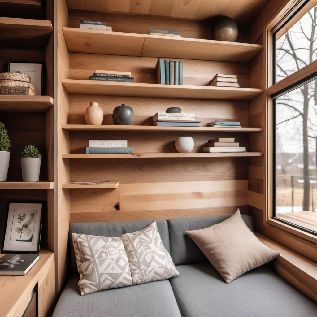 Quando lo spazio sul pavimento è limitato, le pareti diventano la tua risorsa migliore. Mensole a parete, scrivanie a parete o persino un letto a soppalco possono mantenere la tua piccola casa ordinata. Lo stoccaggio verticale non solo fa risparmiare spazio, ma aggiunge anche un tocco moderno al design della tua casa minuscola.