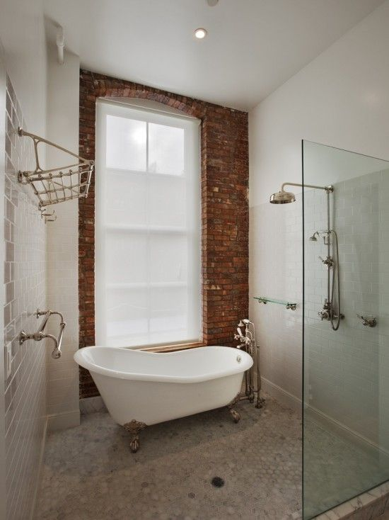 Questa idea prevede che la vasca sia posizionata più vicino alla parete posteriore e la doccia più vicino all'ingresso. In questo caso, viene installato uno schermo o una tenda vicino alla doccia e non è necessario installarne uno vicino alla vasca. Per evitare l'umidità e la formazione di muffa, è necessario prevedere dei fori di drenaggio, la cui quantità dipende dallo spazio sul pavimento in cui cade l'acqua.