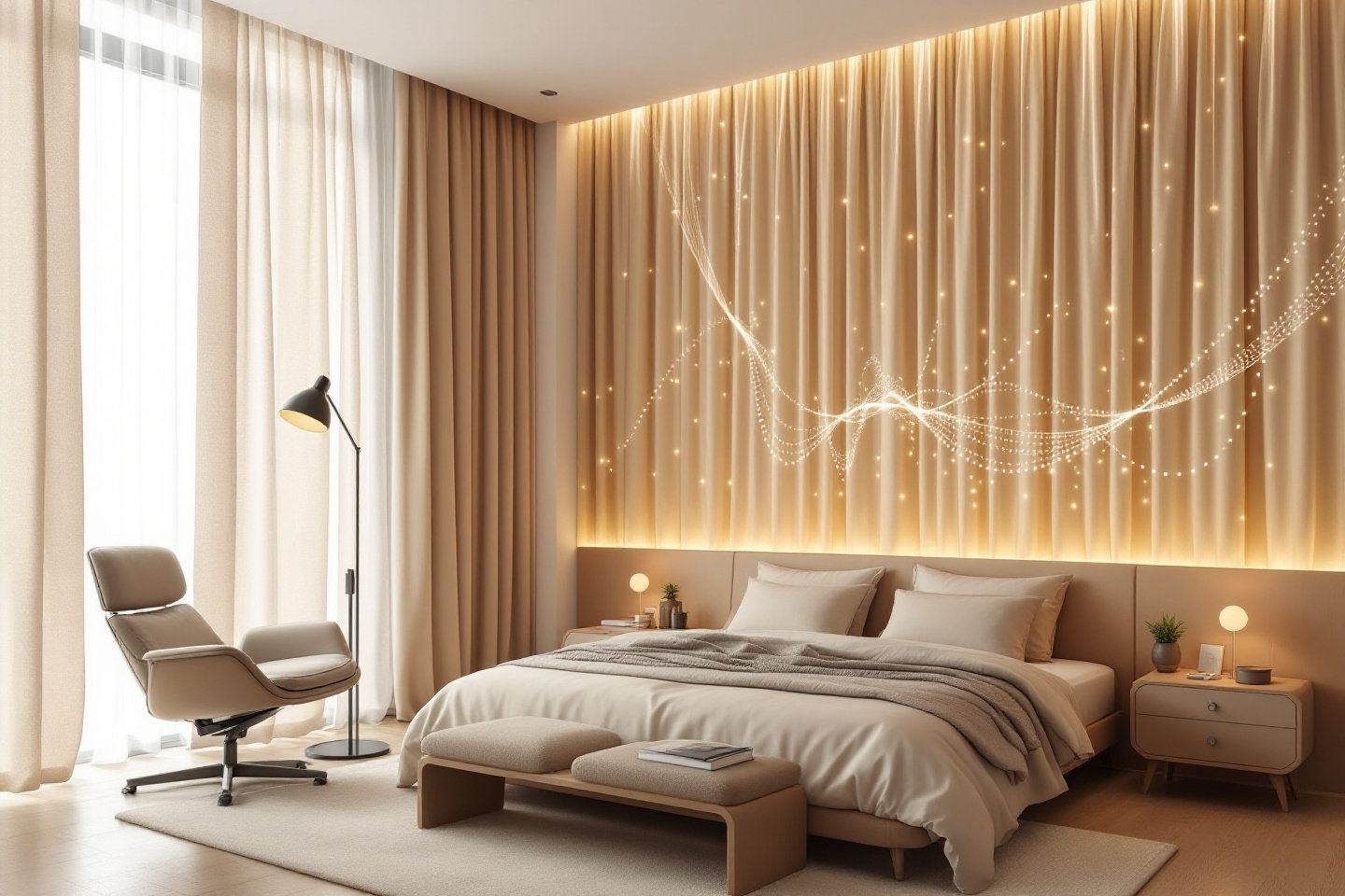 Immagina tende che cambiano dal calmo verde salvia a un vivace giallo senape in base alla luce solare o a un comando vocale: lana tinta a mano infusa con fibre intelligenti tramite macchine da ricamo a controllo digitale. Non è fantascienza, è la realtà del 2026. Inizia con un spesso lino o lana artigianale, quindi intreccia micro-fili a LED controllati da una semplice app. Perfetti per aree dedicate al benessere, questi tessuti trasformano una camera da letto in un santuario che solleva l'umore, sincronizzandosi con il tuo ritmo emotivo.