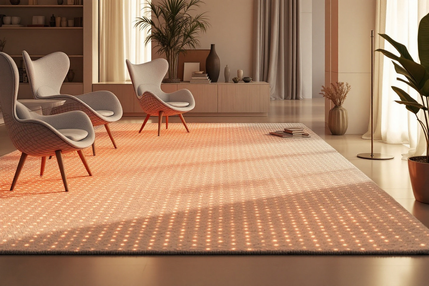 Immagina di calpestare un tappeto di lana soffice che si illumina con motivi scultorei o si riscalda tramite un'app per un comfort accogliente. Realizzato con lana di pecora riciclata, è dotato di sensori simili a Arduino per la reattività, ideale per pavimenti multifunzionali in spazi aperti. Abbinalo ai mobili curvi del 2026 per un flusso armonioso, illuminandolo per le sessioni di yoga o attenuandolo per le serate di film. Perché è così eccezionale? Unisce le tendenze biofiliche con la tecnologia a basso consumo, promuovendo il benessere senza sprechi. Gli ecologisti e gli appassionati di design adoreranno i pavimenti che sembrano vivi, fondendo le ricche texture dell'artigianato con l'adattabilità della tecnologia per uno spazio dinamico come te.